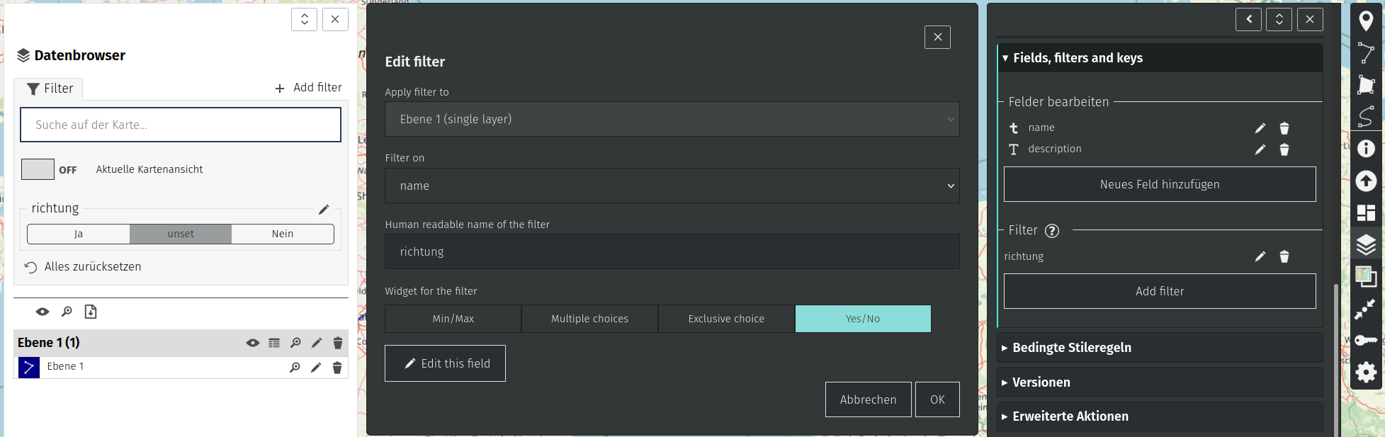 Datenlayer können nun nach bestimmten Kriterien gefiltert werden, um nur relevante Objekte anzuzeigen. #2868, #2981