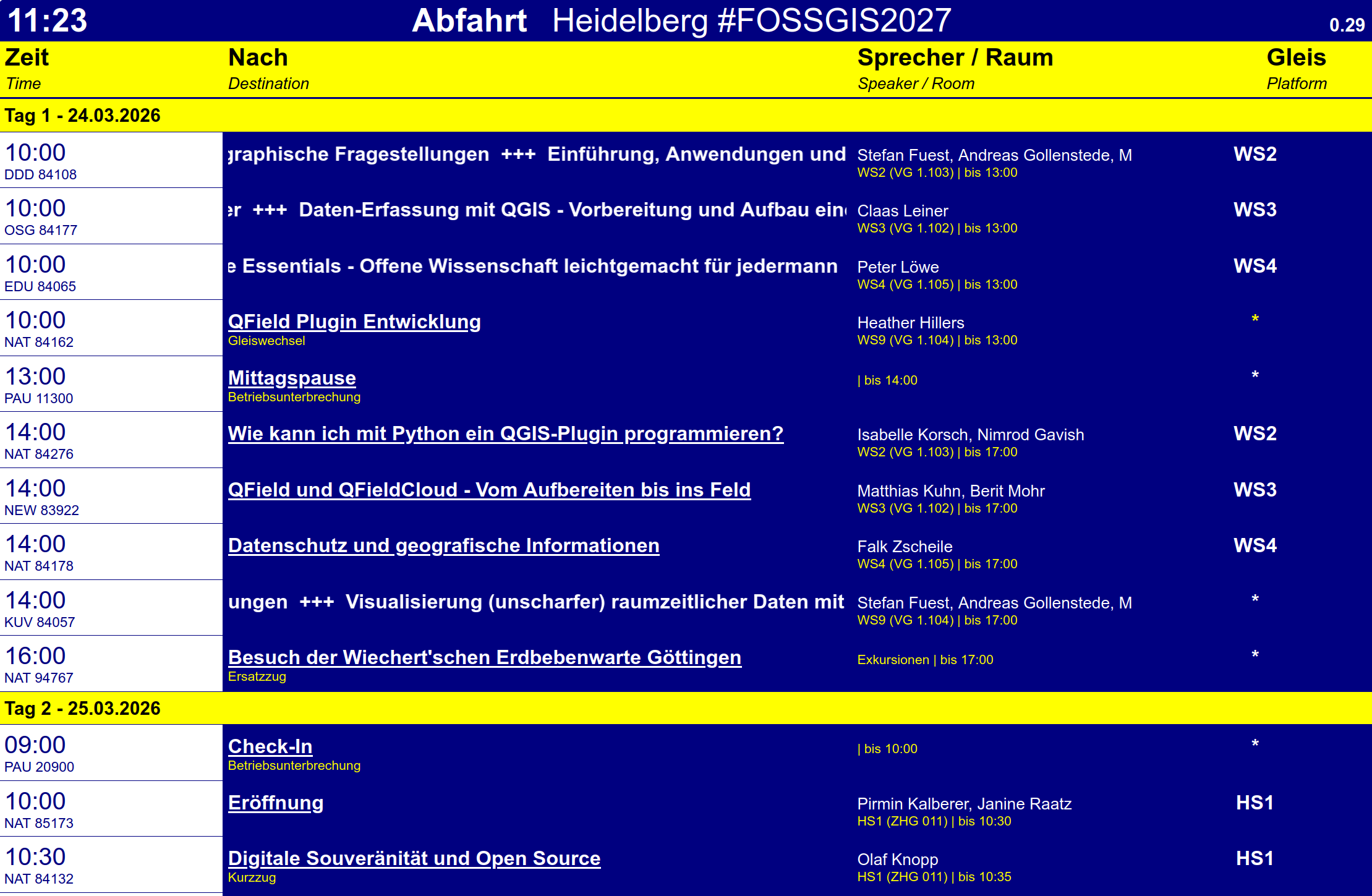 Abfahrtsmonitor für die FOSSGIS Konferenz:
