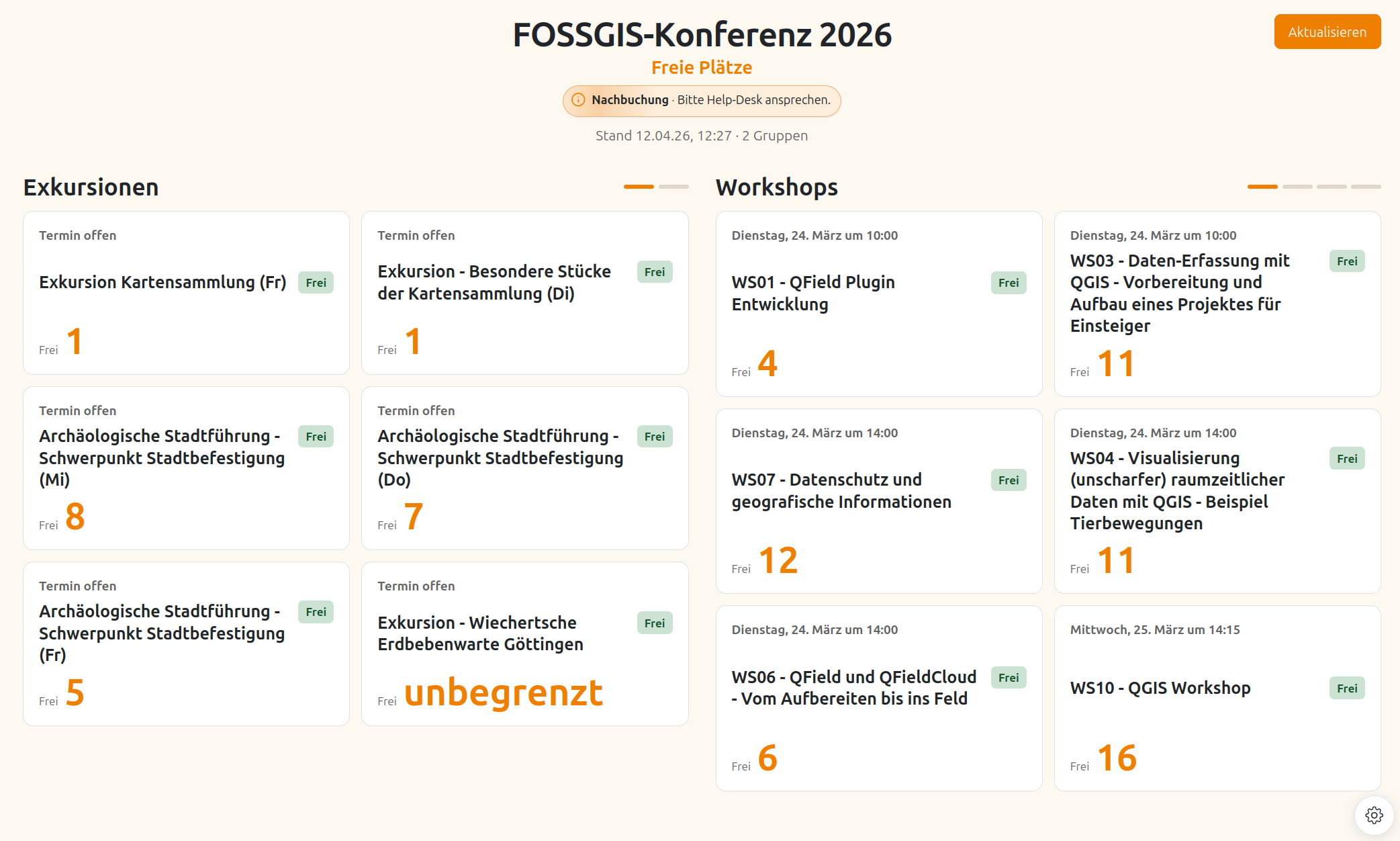 Die Beispiele aus diesem Wochenende zeigen die Bandbreite sehr gut. Es ging um kleine, nützliche Tools für Events wie Platzmonitor oder Abfahrtsmonitor, um Daten und Darstellung wie externe WMS Layer in BBBike oder einen Rust Renderer im Browser, und genauso um Austausch und Mapping Themen rund um Micromapping und Strassenraumdetails. Du kannst an deinem eigenen Projekt weiterarbeiten, dich an etwas dranhängen oder einfach erst mal zuschauen und Fragen stellen.