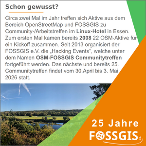 Aktivitäten anlässlich des 25. Jubiläums des FOSSGIS e.V.[Bearbeiten | Quelltext bearbeiten]