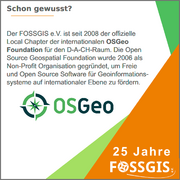 | 11:19, 15. Okt. 2025 | SocialMedia 25 Design 002 LocalCh OSGeo.png (Datei) | 324 KB | Schon gewußt? Local Chapter der OSGeo | 1 | |