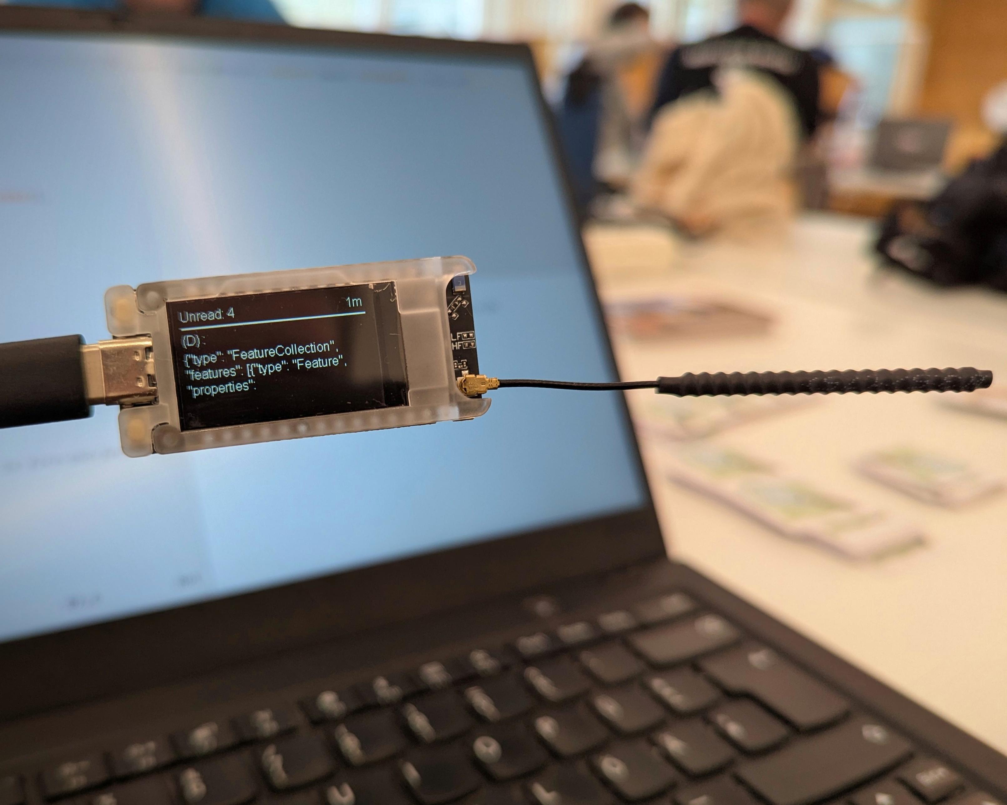 on cheap Heltec T114 v2 hardware flashed with open source MeshCore v1.9.