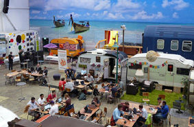 Also wurde der Code Sprint erstmals geteilt: Mit drei Tagen vor und zwei danach umrahmt er die Konferenz. Ein wesentlicher Erfolgsfaktor, dass auch diese Rechnung aufgeht, ist erneut die Location: das Base Camp. Ein In- und Outdoor Retro-Park mit ausrangierten Wohnwagen und Zugschlafwagen, nur wenige Gehminuten vom WCCB entfernt. Sein eigentümliches Flair aus Nostalgie und Verschrobenheit verströmt ein Gefühl von Zeitlosigkeit. Ideal für kreatives Denken – und damit für die Code Sprints, bei dem Entwickler und User gemeinsam Software optimieren und die Dokumentation auf den neuesten Stand bringen.