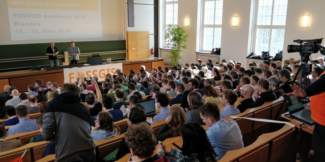 500 Teilnehmer informieren sich bei der FOSSGIS 2019 über freie GIS-Software und OpenStreetMap.
