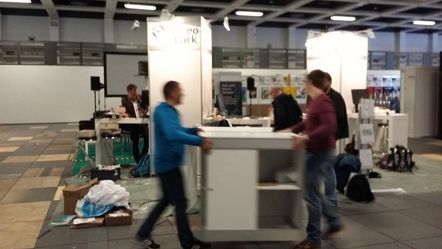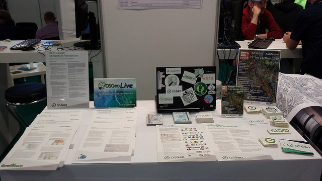 An dem Informationsstand von OSGeo, FOSSGIS & OSM herrschte reger Andrang. Viele Besucher stellten Fragen, die gerne von Vertretern des FOSSGIS-Vereins und der OSM-Community beantwortet wurden. Das frisch gedruckte Informationsmaterial zu OSM und den OSGeo Projekten war sehr beliebt.