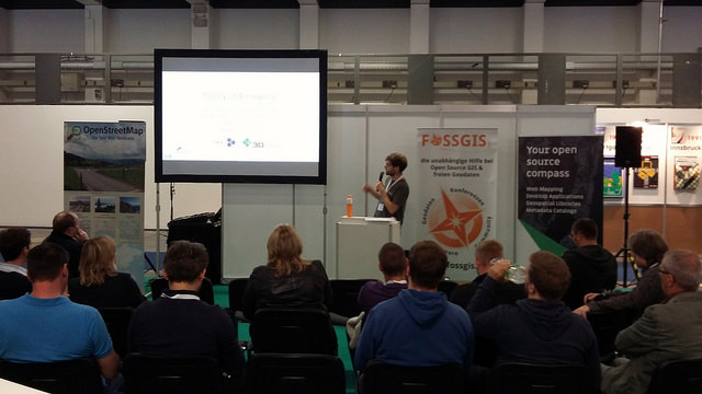 Es gab einen Vortragsbereich auf dem mit Hilfe von Kurzvorträgen ein schneller, aber weitreichender Einblick in die Welt der Open-Source-Software aus dem GIS Bereich und OpenStreetMap gegeben wurde.