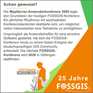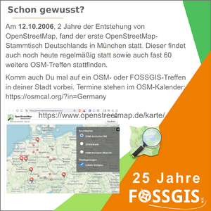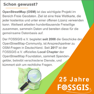 Aktivitäten anlässlich des 25. Jubiläums des FOSSGIS e.V.[Bearbeiten | Quelltext bearbeiten]
