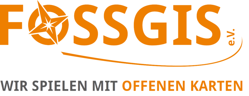 FOSSGIS e.V. Logo + Slogan "Wir spielen mit offenen Karten"