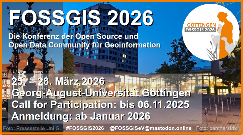 Ankündigung FOSSGIS 2026, Social Media Bild